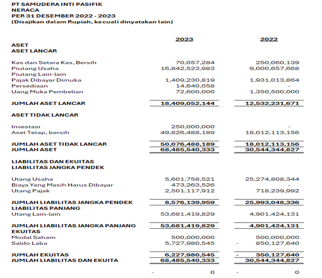 SAMUDERA INTI PASIFIK | Laporan Keuangan